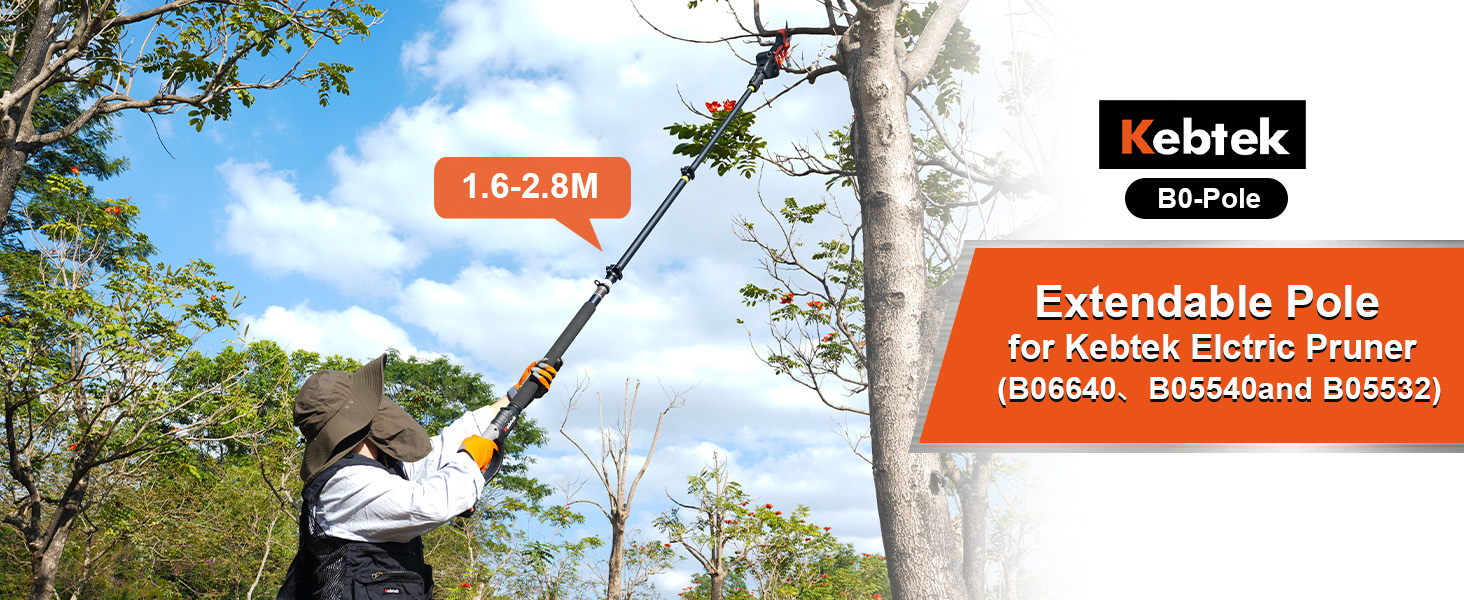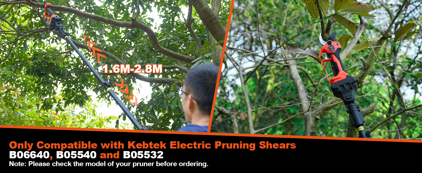 【Versatile Application】This pole is perfectly compatible with Kebtek B05540 and B06640 battery operated pruning shears. (These electric pruners are Not included. You can buy them according your needs.) Effortlessly trim high branches or prune low large branches, vegetables, weeds, and more, even in dense, thorny shrubs or narrow spaces.