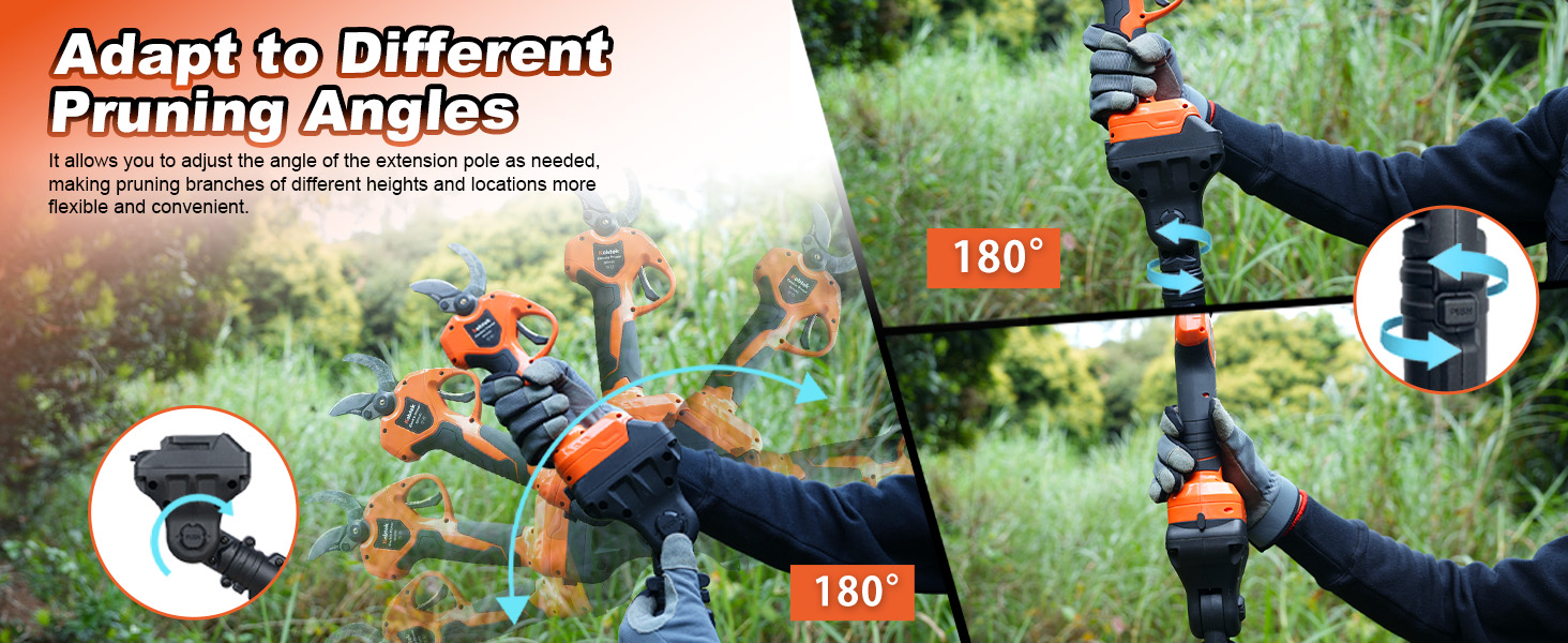 【Multi-angle Adjustment】 It allows you to adjust the angle of the extension pole as needed, making pruning branches of different heights and locations more flexible and convenient.
