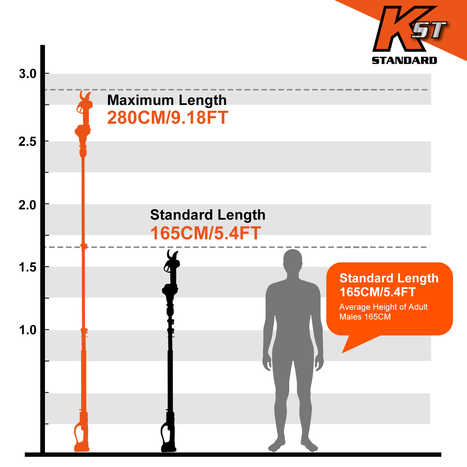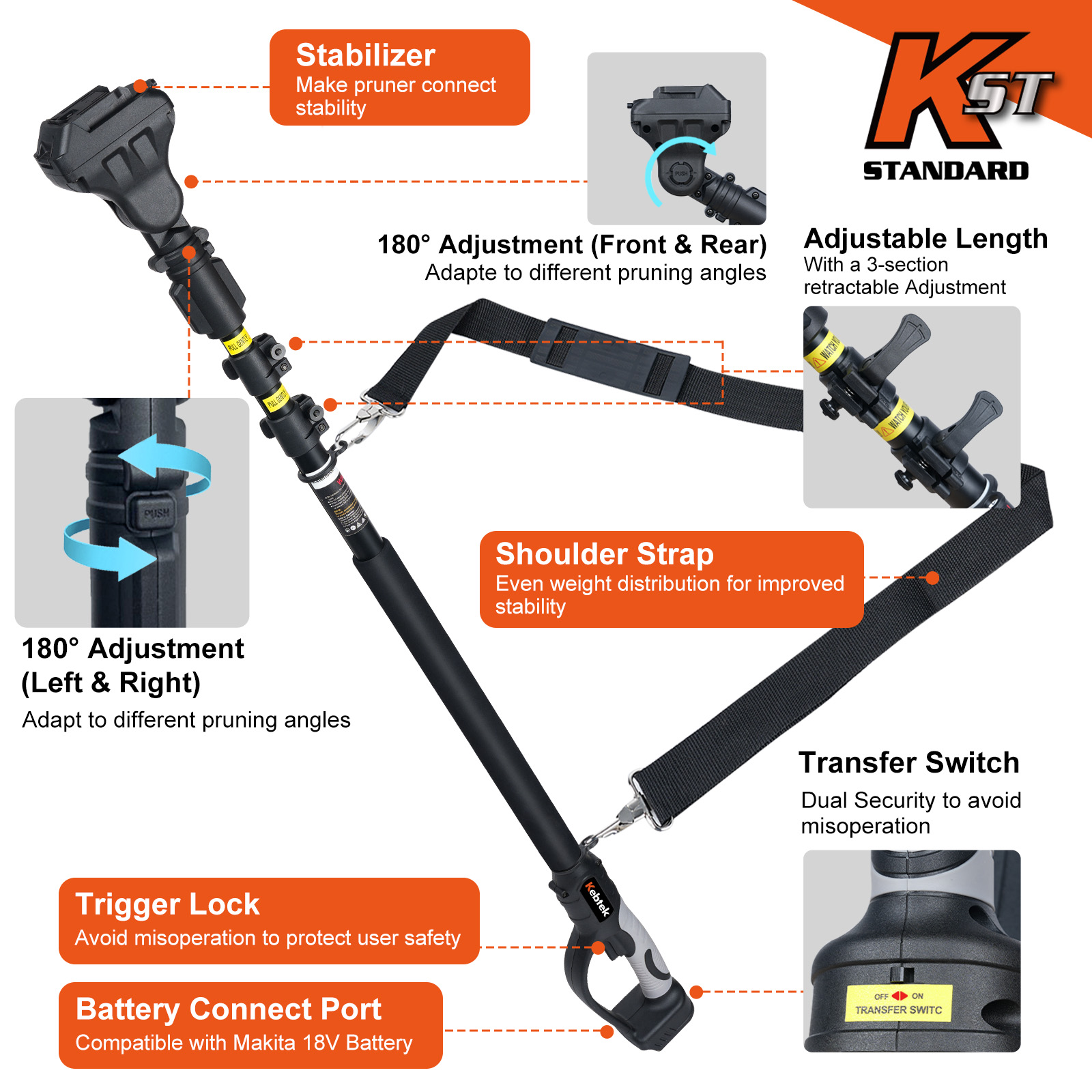 【Easy Operation:】With a simple , this telescopic pole can be easily used with electric pruning shears cordless. It is more efficient and safer compared to using a shaky ladder, making it a great tool for all challenging pruning tasks.